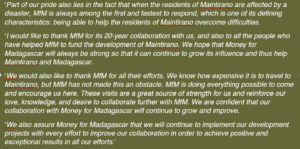 ‘MfM has helped raise the profile of Melaky, and Maintirano in particular, on the international scene.